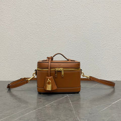 This luxurious mini vanity case embodies sophistication and refined craftsmanship. Designed with smooth natural calfskin, it offers both structure and softness, giving it a timeless appeal. The compact silhouette makes it an ideal choice for carrying beauty essentials or small accessories in style. Its elegant chain strap, inspired by classic Parisian architecture, adds a modern edge to its graceful form. Perfect for travel, evening outings, or everyday sophistication.