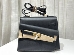 This exquisite mini handbag captures the essence of modern elegance with its structured Sellier-inspired silhouette and luxurious gold-tone hardware. Crafted from premium leather, it embodies timeless sophistication and meticulous craftsmanship. Compact and versatile, it’s designed to hold your essentials with effortless grace — perfect for formal occasions or chic everyday wear.